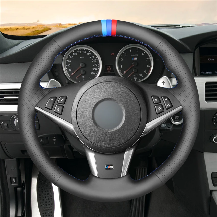 For Bmw E60 E61 Black Perforated Leather Steering Wheel Cover M3 Stitching Vehicle Parts Accessories Car Tuning Styling Parts